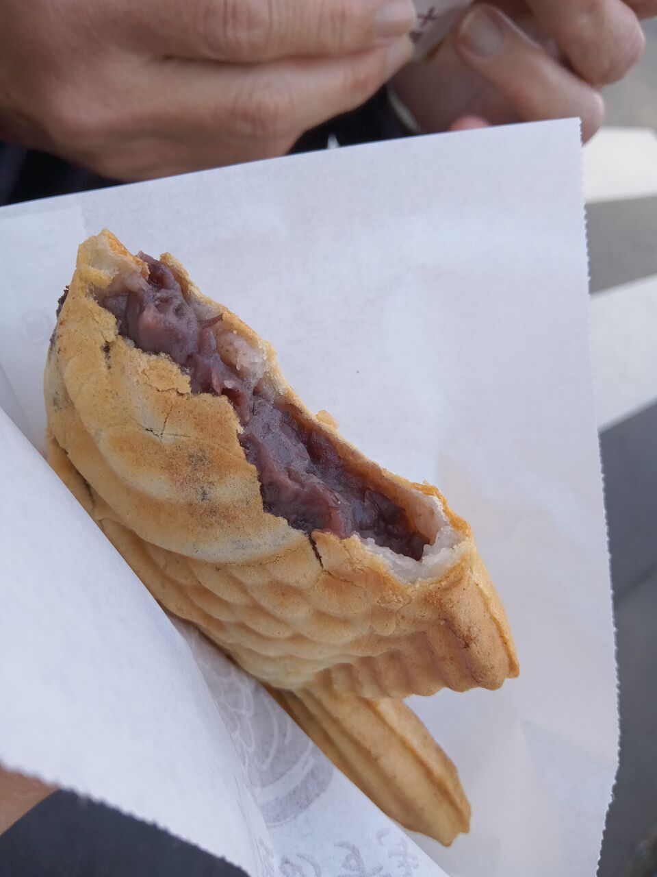 たい焼きってこんなだった?よくあるふかふかしたタイプではなく、カリッカリのかわに粒あんがぎっしり
