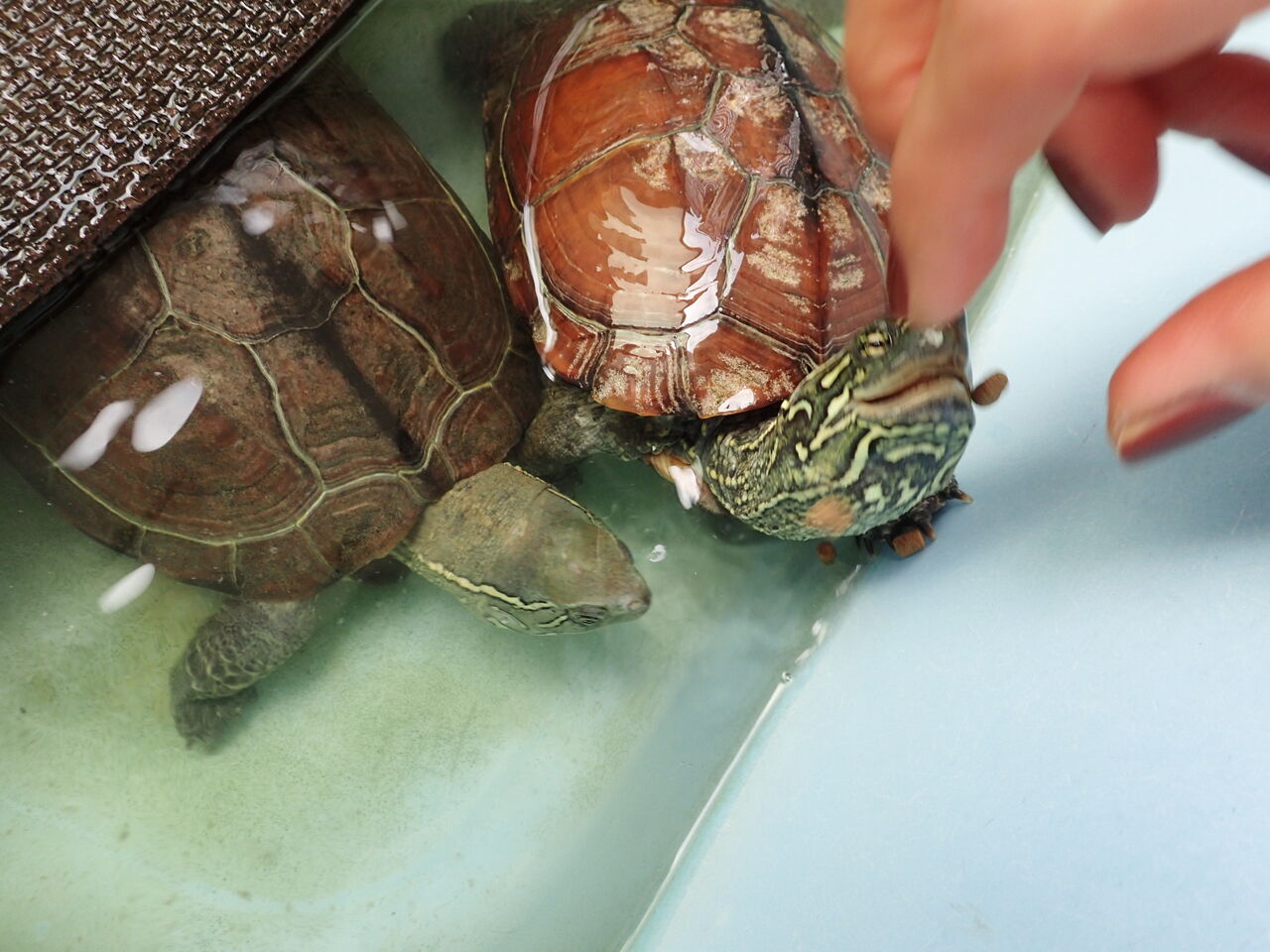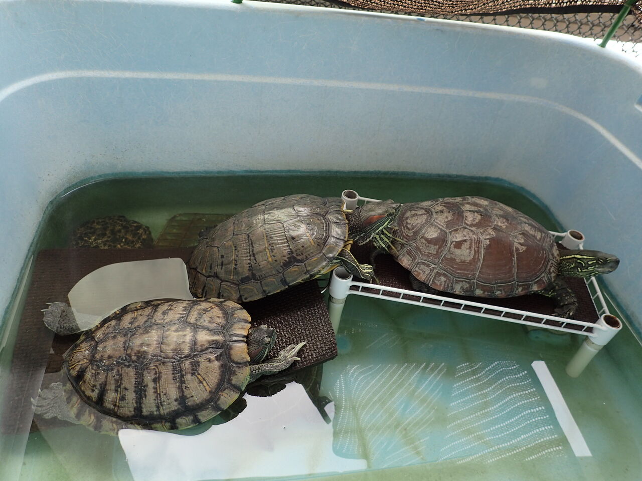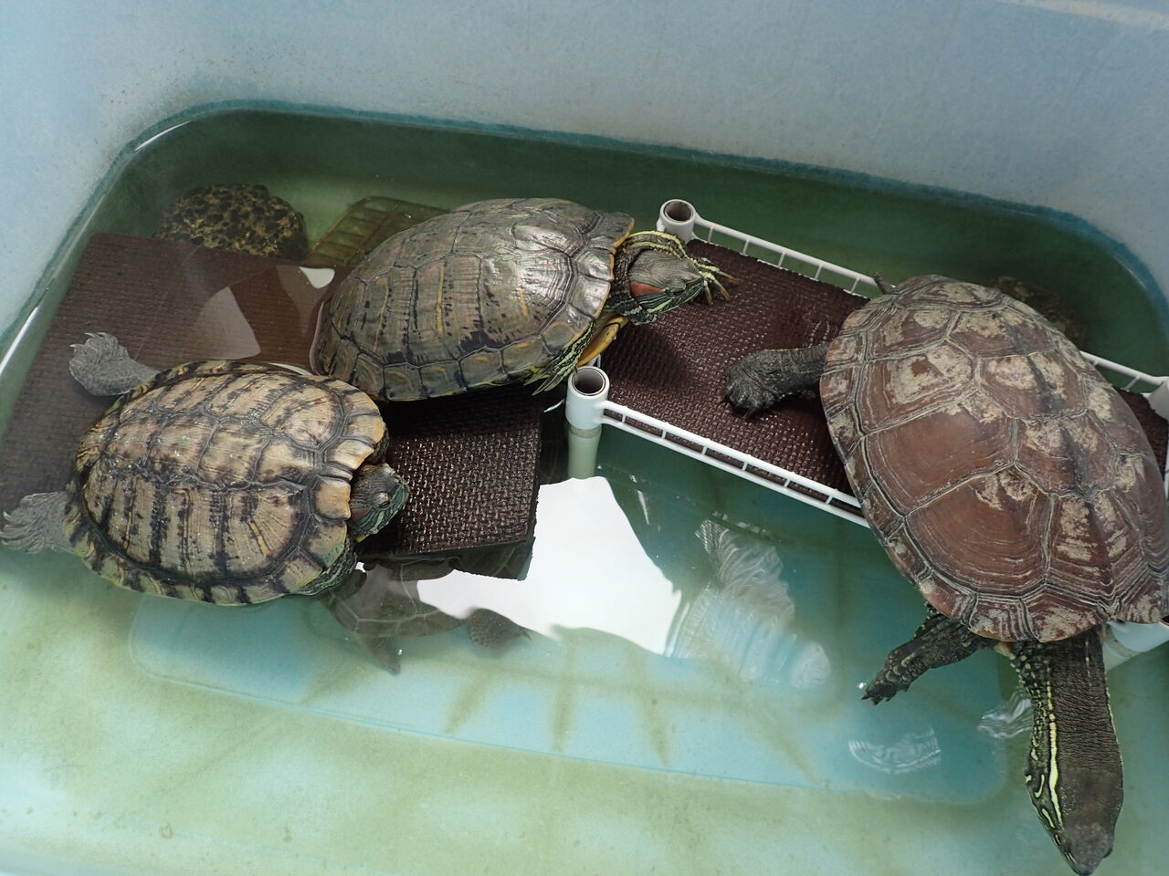 仲良く並んでまったりしているカメちゃん達
