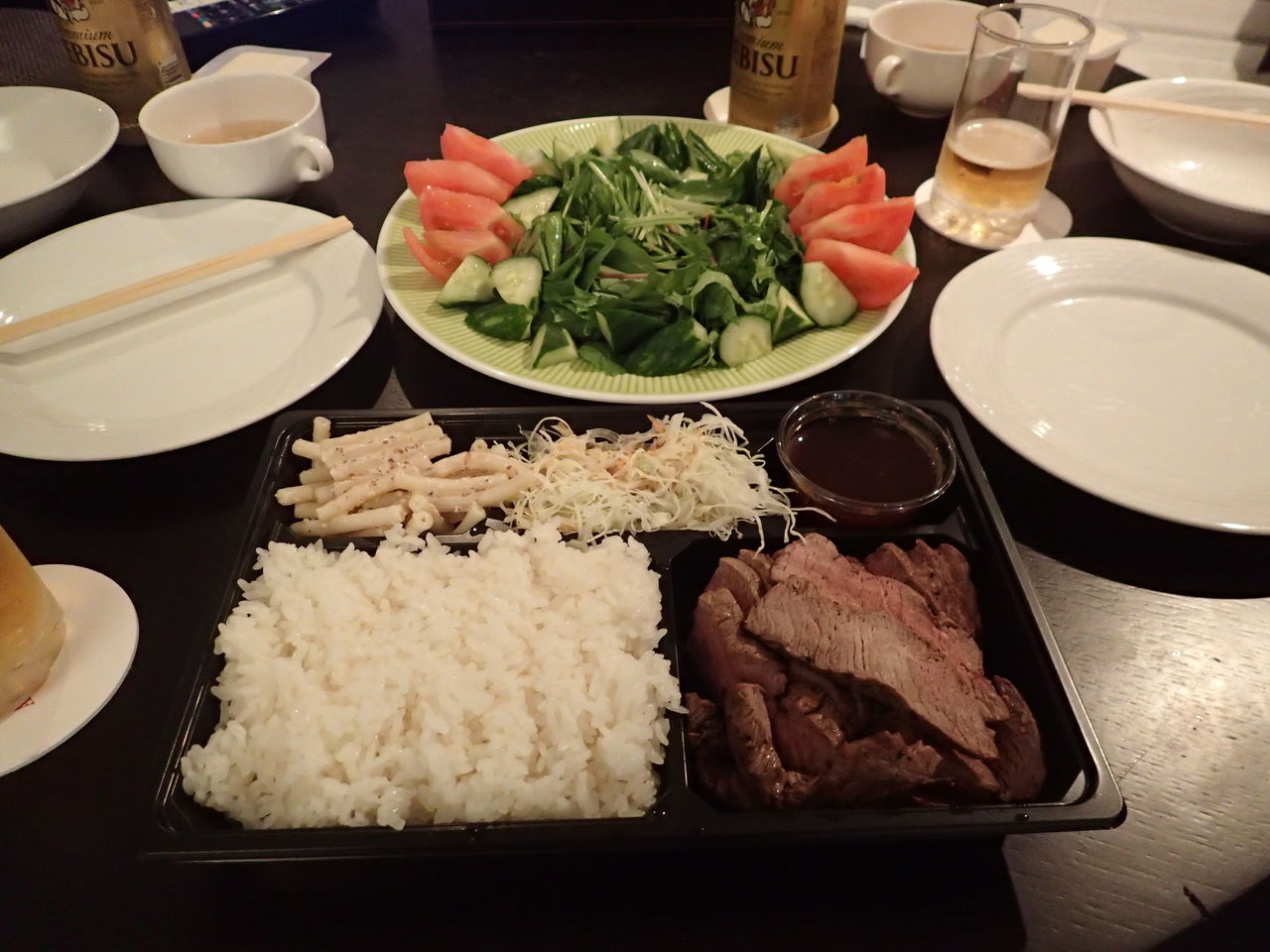 Y「明日はホテルのレストランでパーッとステーキでも食べるか!