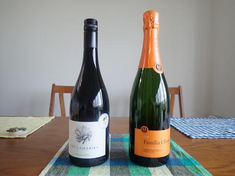 左は、フランスの赤ワイン。右は、「スペインのシャンペン」CAVAです。