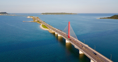 「あやはし」とは 「美しい橋」のことで、本島勝連から全長4.75kmの「海中道路」が4つの島「浜比嘉島」「平安座島」「宮城島」「伊計島」を結んでいるんです。