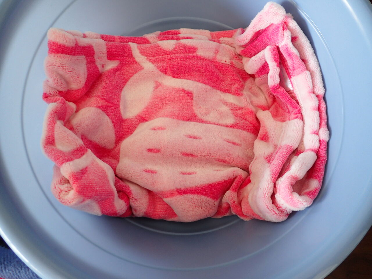 小さめの毛布とレンチンしたゆたぽん乗せて