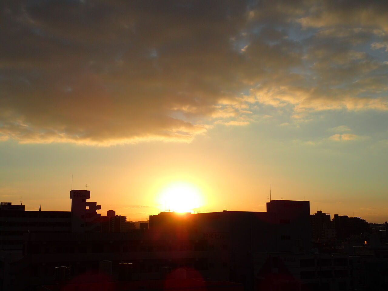 リモートで続けている朝ストレッチが終わる7時半、朝日と共に青空が![]()