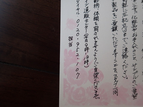 そんな中この1枚のハガキ。少し前にネットで購入した化粧品会社から送られてきたシンプルなDM![]()