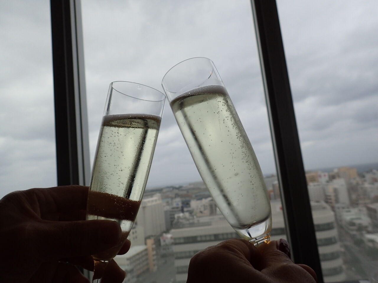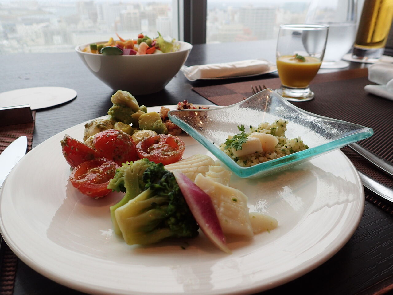 と行った、那覇にある『リーガロイヤルグラン沖縄』のちょっと贅沢なホテルランチの話で気を紛らわしましょう![]()