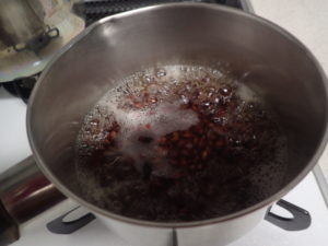 北海道産小豆を買ってきました。早速軽くゆでてあく抜き![]()