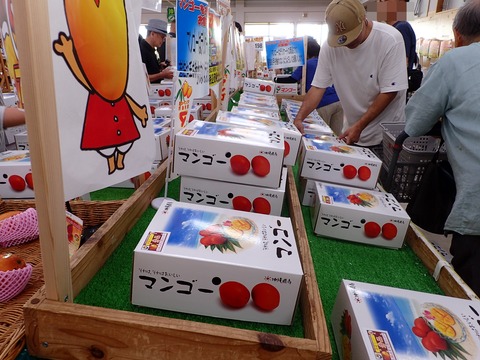 到着してみると、狙いだったマンゴー売場にこれまた大勢のお客様が押し寄せて、居並ぶマンゴーの箱を吟味しています。