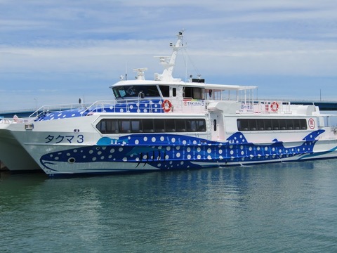那覇港から出る高速船「ジンベイ・マリン」なら、最短75分の海のドライブで本部・渡久地港まで移動できます![]()