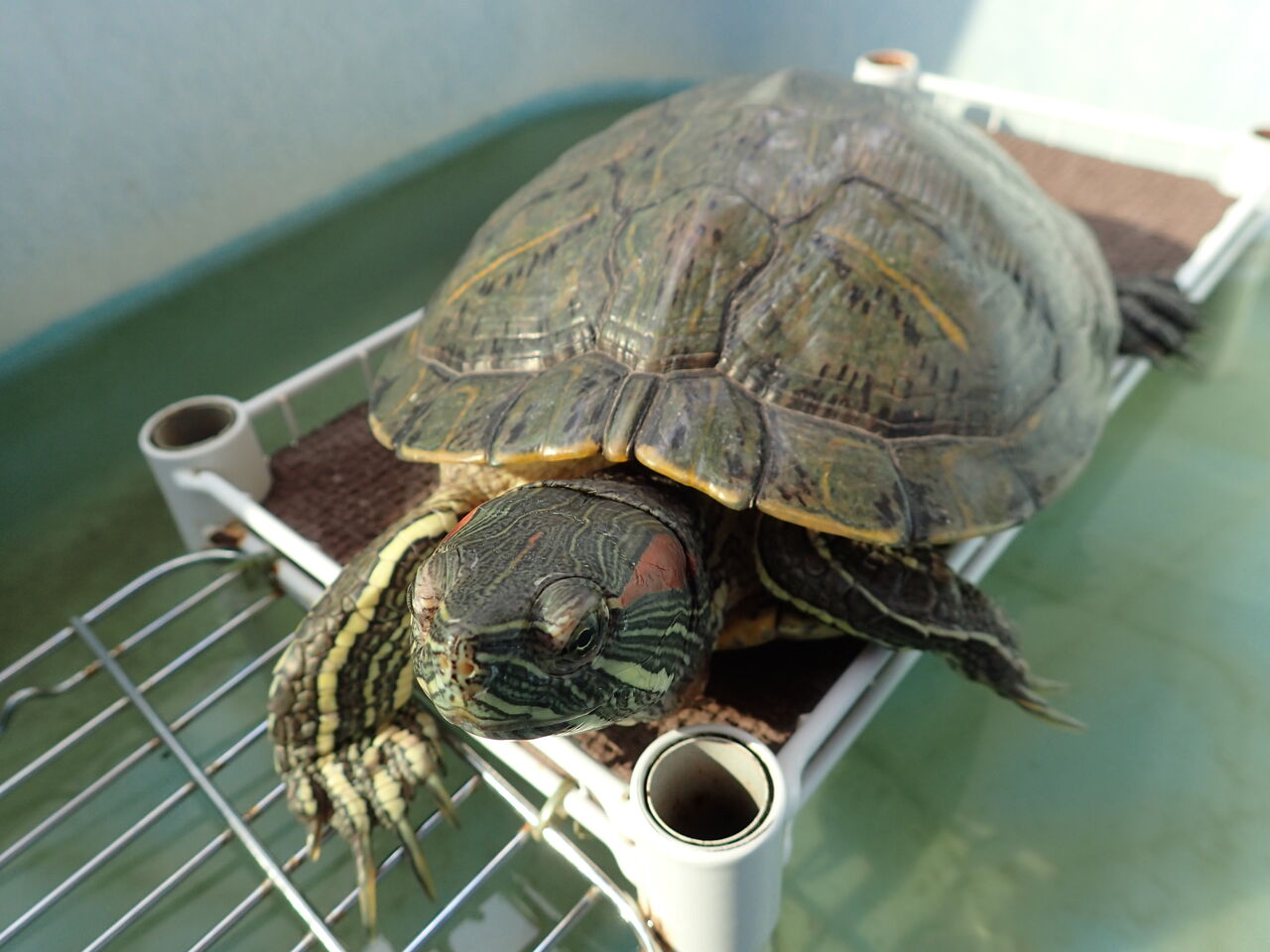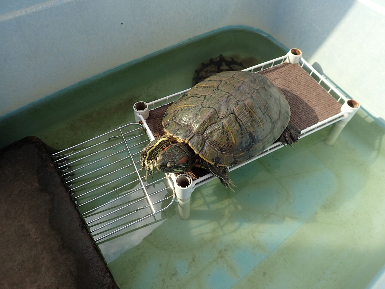 昨日の強風でカメちゃん転落防止柵が崩壊![]()