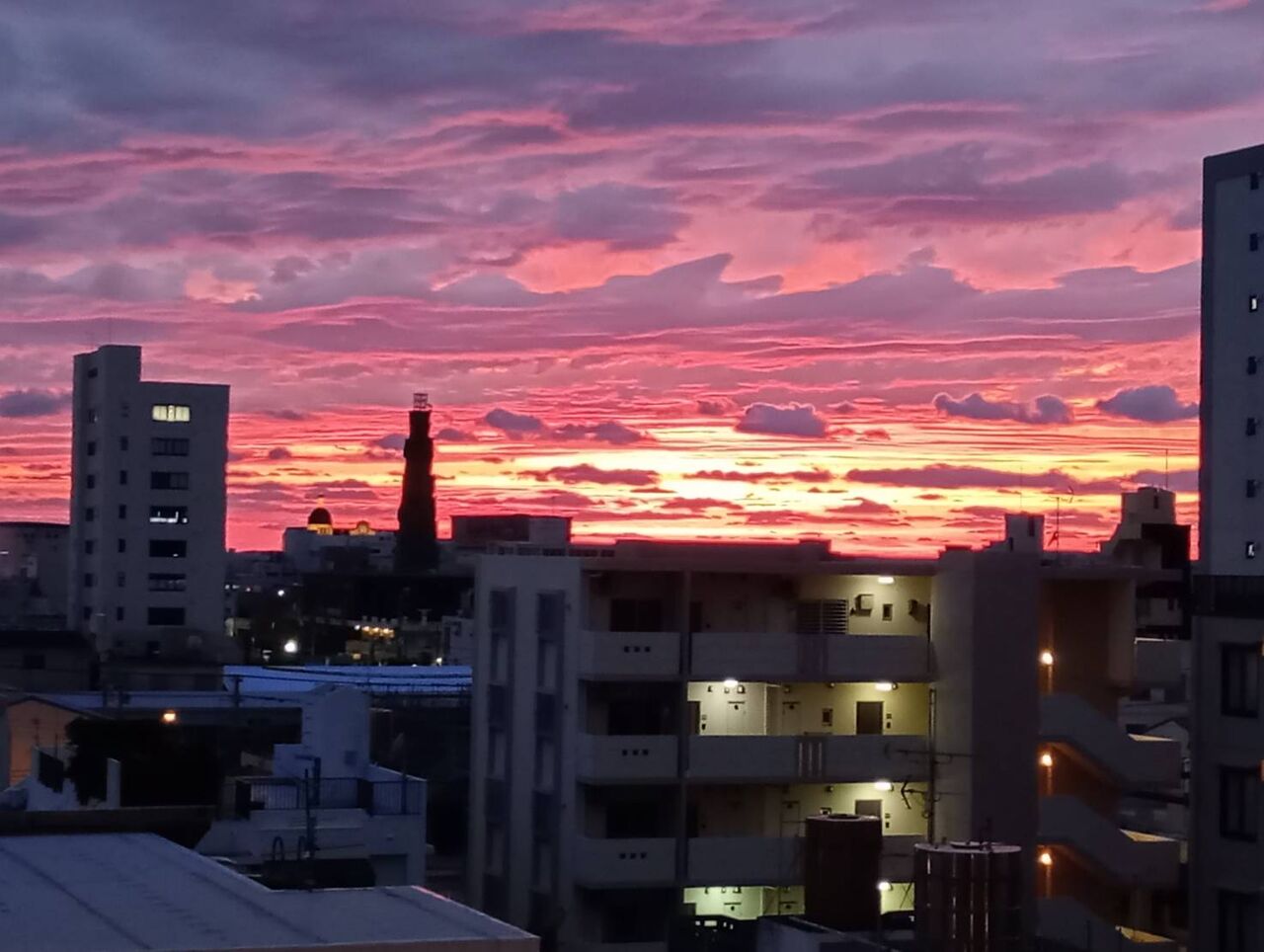 昨夜7時過ぎの幻想的な夕焼けで癒されましょう~![]()
