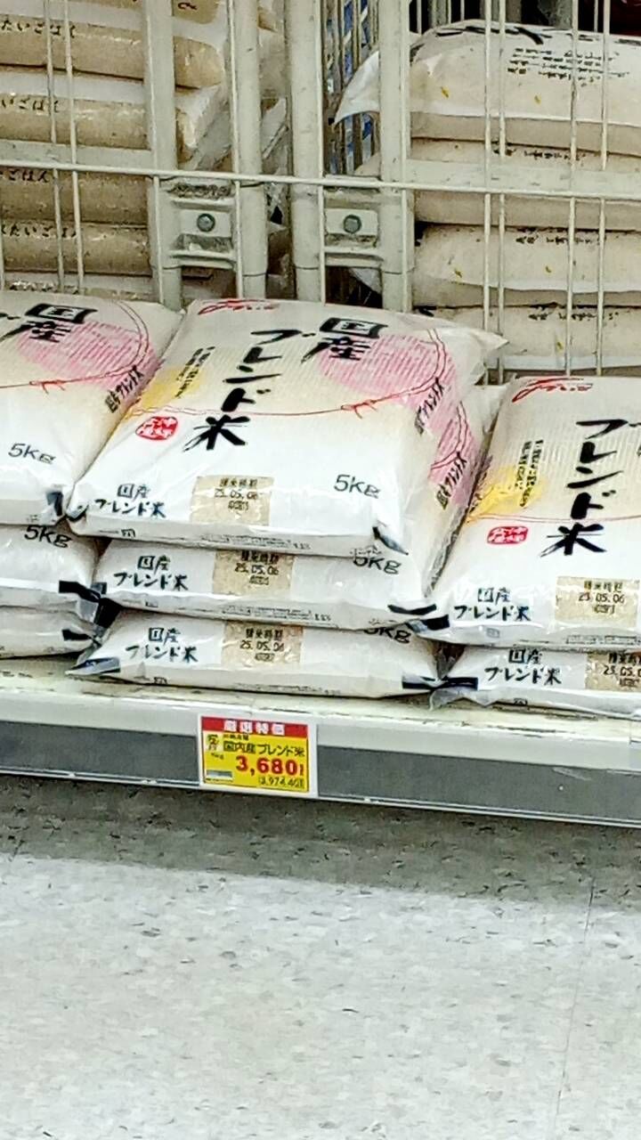 今朝スーパーで見かけたお米。これは備蓄米かな![]()