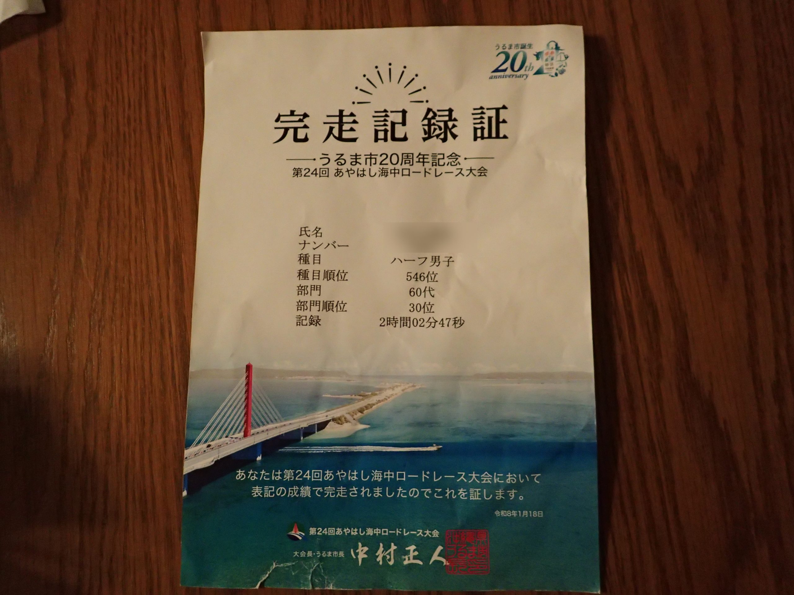 昨日は今年最初のマラソン大会「第24回あやはし海中ロードレース大会2026」に参加してきました。