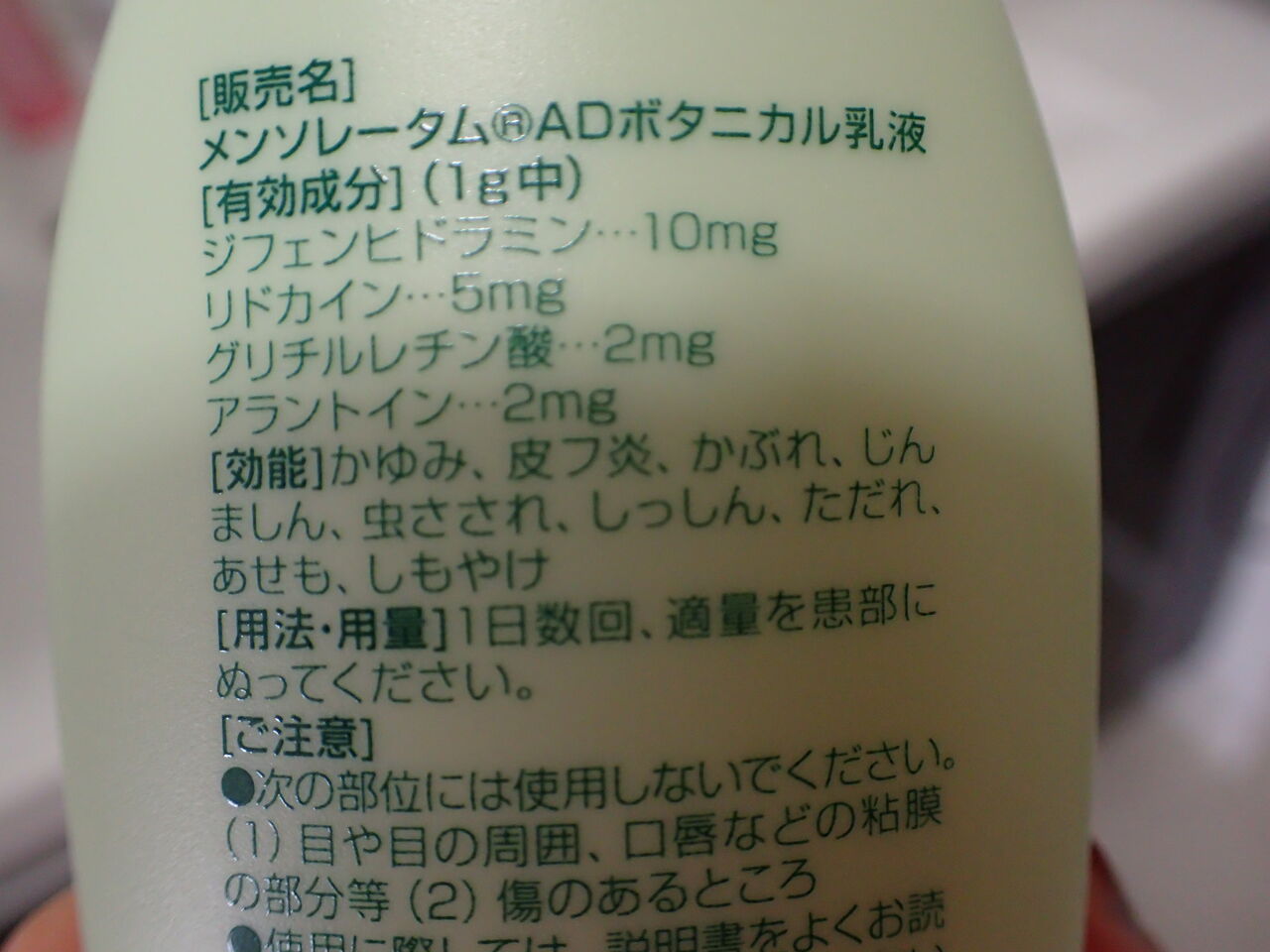 でも痒み止めの効果は抜群で時々ぽつっと出現する蕁麻疹もコレつけるとすーっとひいていきます。後でネットで見たら薬局で買うより300円程安かった![]()