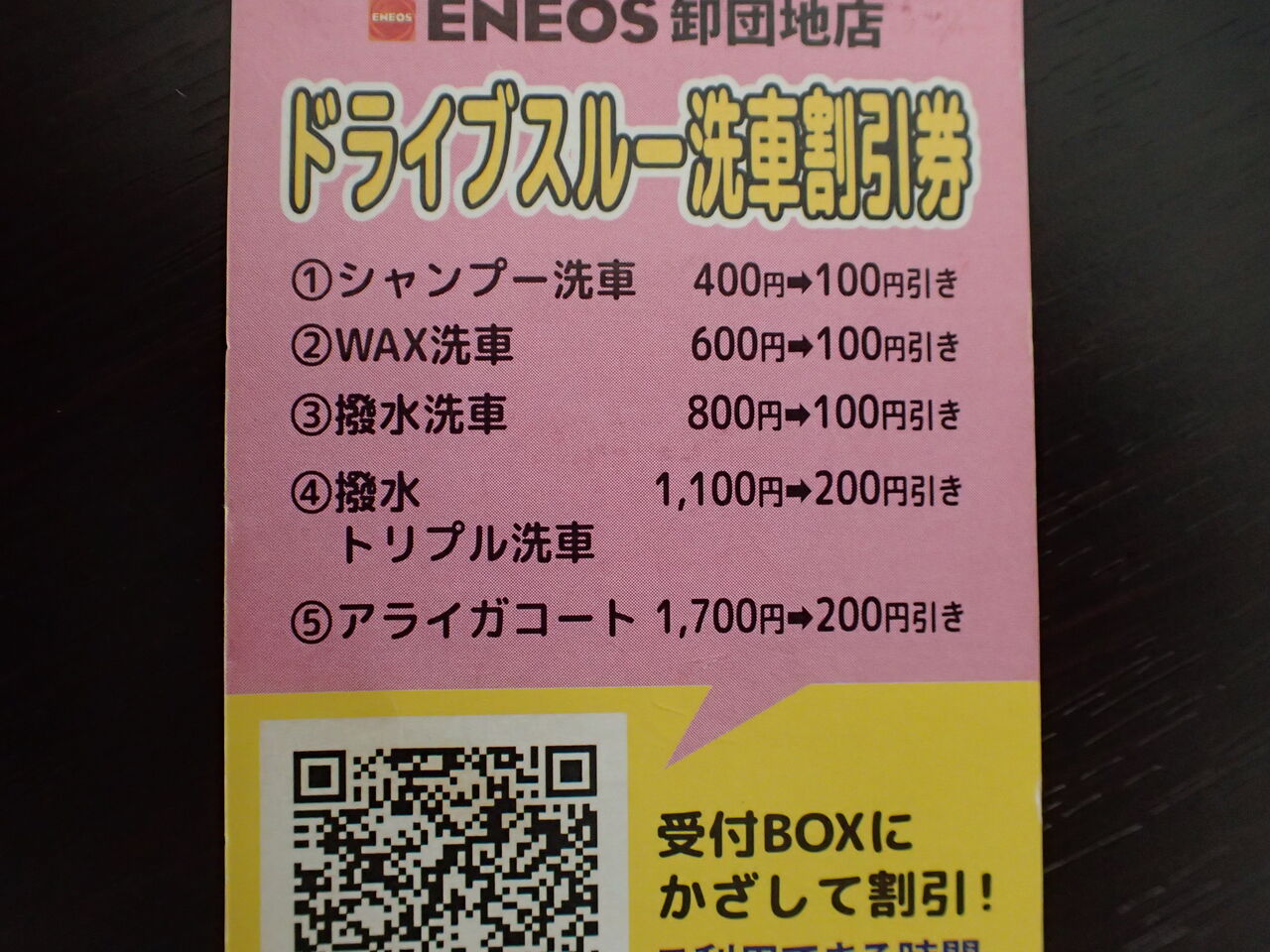 です。1000円分残っていたエネオスの洗車プリカ
