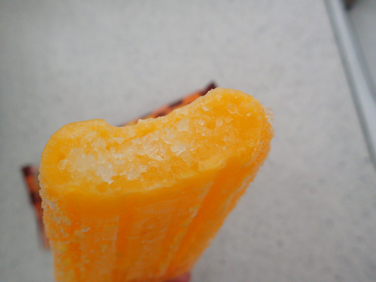 中には氷の粒がザックザク、オレンジの香りが爽やか~まだまだ暑い沖縄、かき氷アイスバーで涼を得ることにしましょうね~