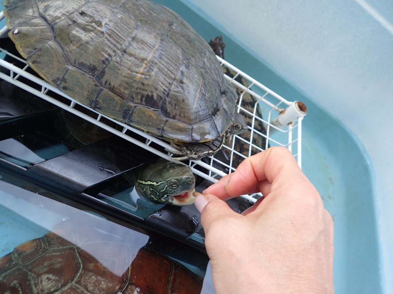 カメちゃん達もごはん食べる量が減ってきて、クサガメの二人はまだ食べるけど