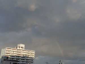 朝8時うっすらと虹が見えたあと9時頃には少し雲が抜けてきました