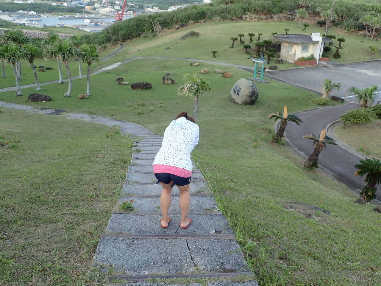 最後は後ろ向きに坂を上り