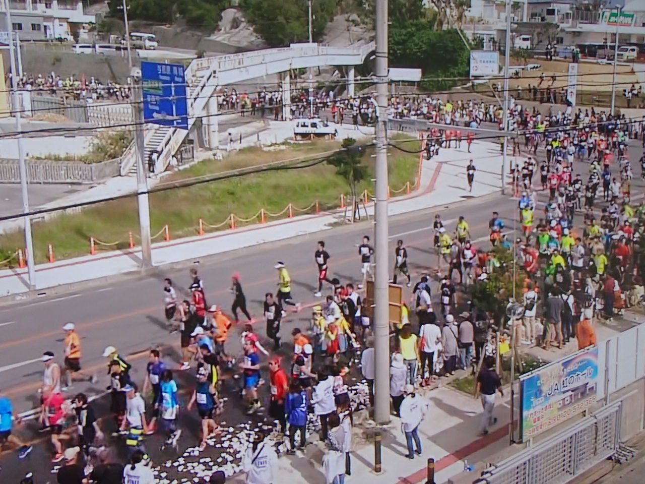 9時過ぎからテレビでは「那覇マラソン」中継が・・・