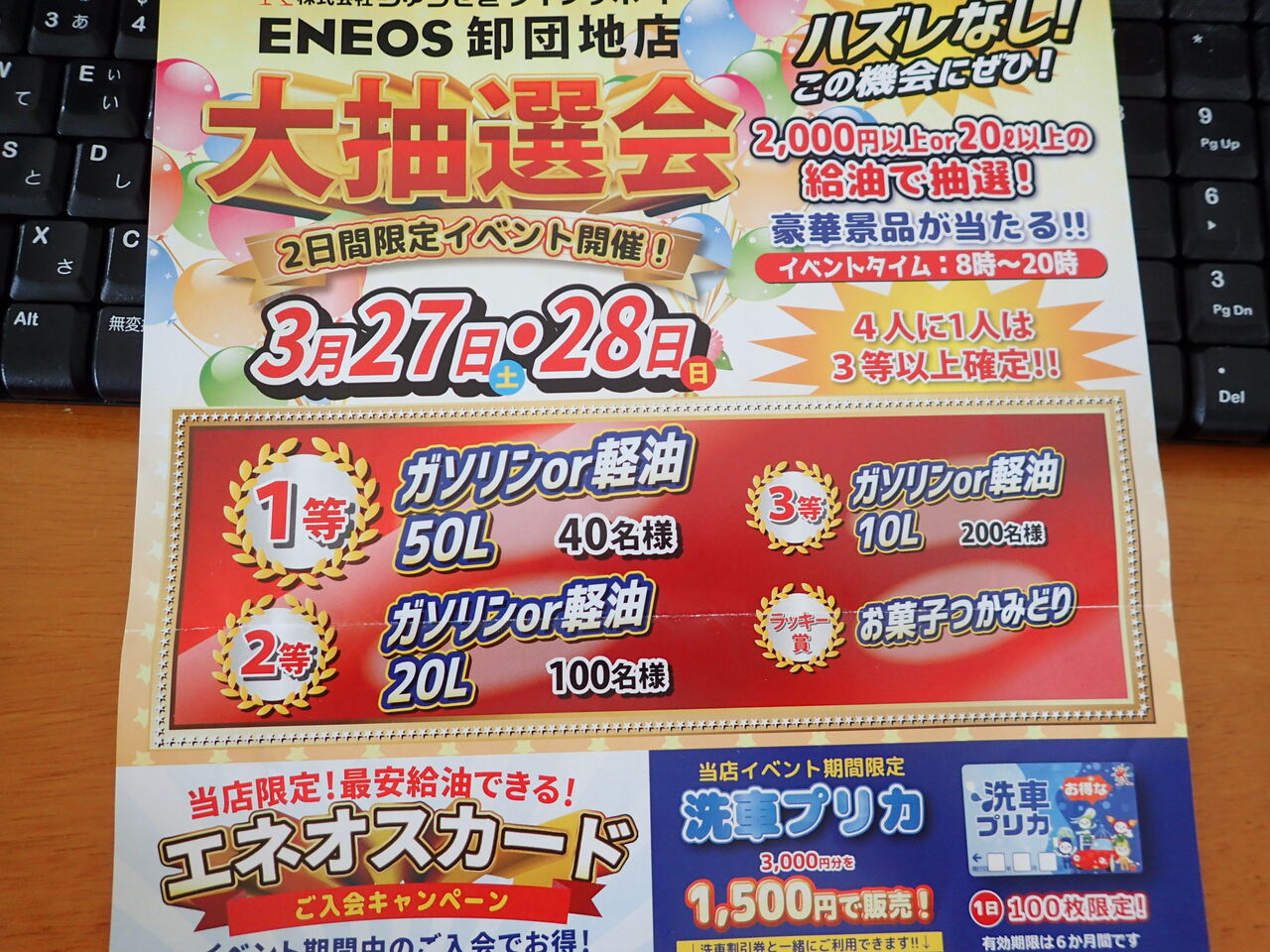 です。先日お話した近所にオープンしたエネオスの抽選会へ行って参りました👉過去ブログ