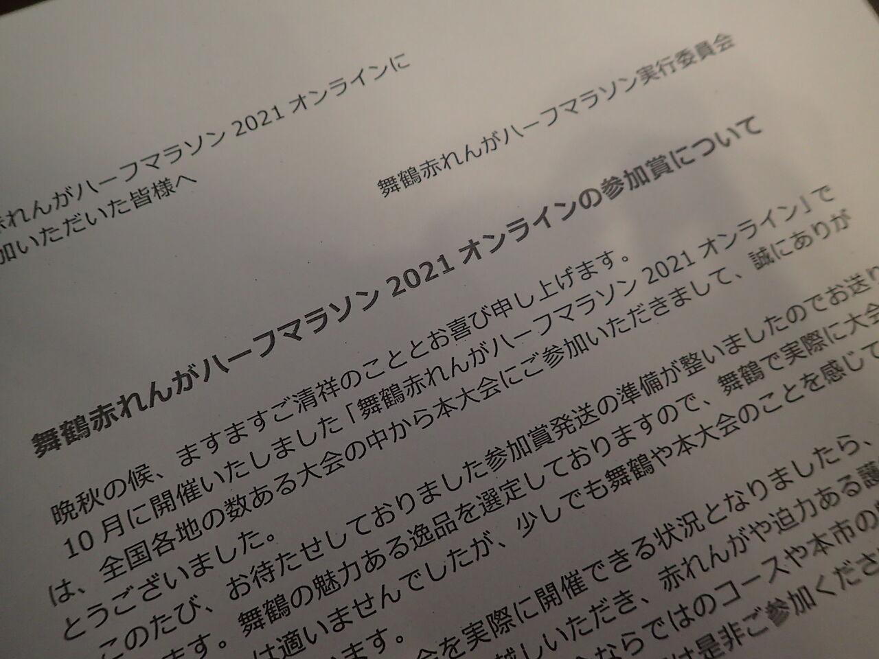 そういえば昨夜、Yが参加しているオンラインマラソンの参加賞が届いていました。