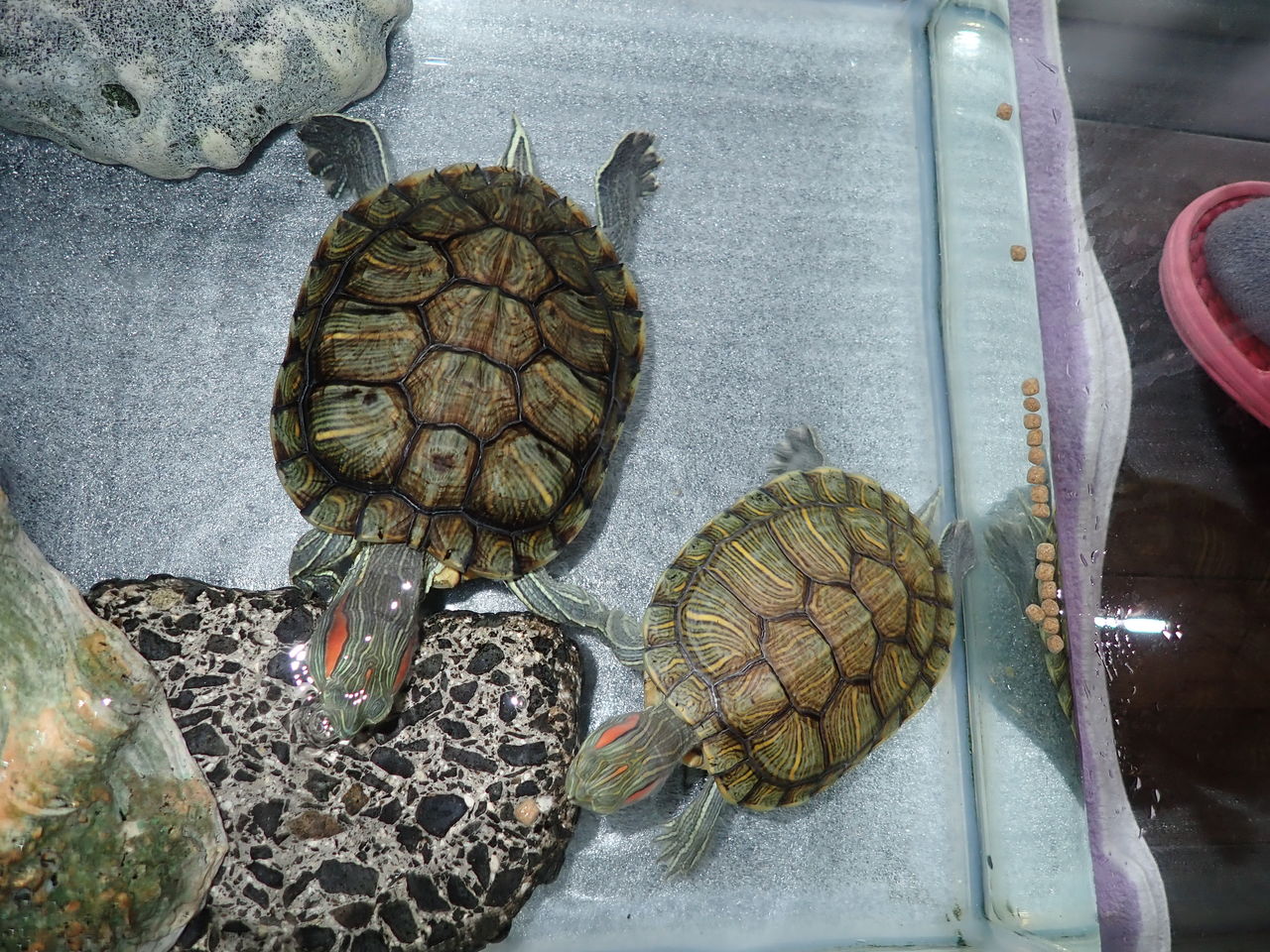 ところで私たちが出かける時、家でお留守番のカメちゃん4兄妹なんですが。。。カメちゃんにとって一番良くないのは水の汚れなんです。で、水が汚れる原因はうんち。
