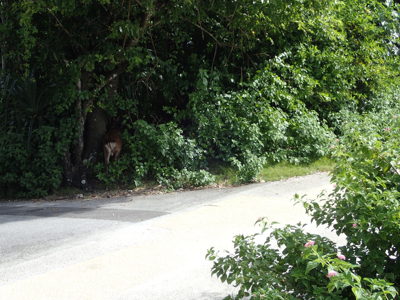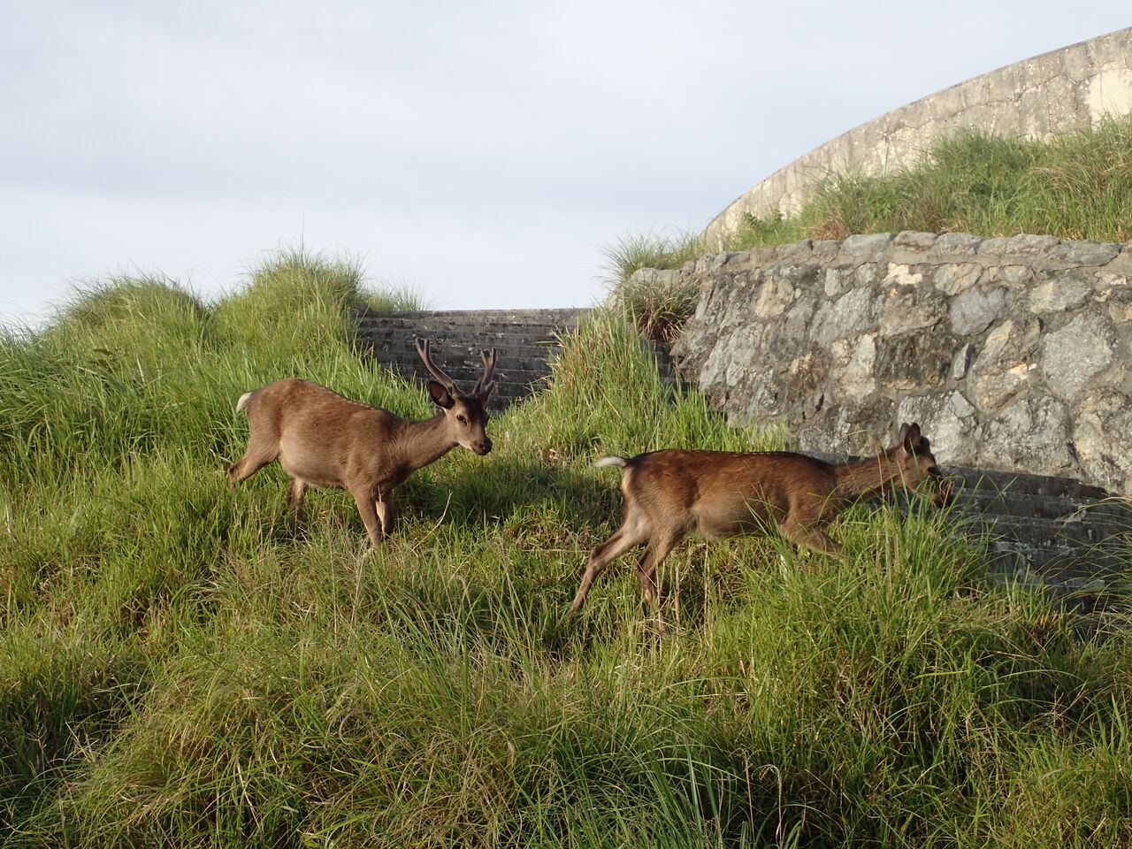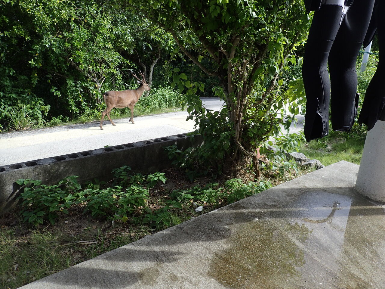 アパートの脇で草を食べているケラマジカに出会いました![]()