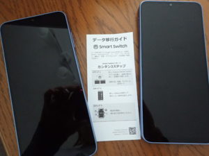 そこで予算内で見つけたおサイフケータイ機能付きSamsungのgalaxy端末に替えることにしました。我が家に必要な機能はすべてそろっていたので2人分注文、届いたらデータ移行開始です![]()