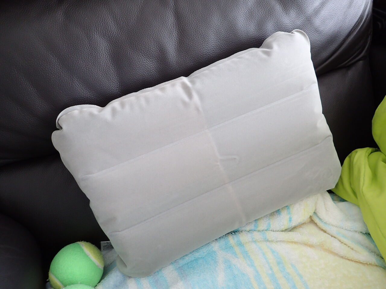 ネックピローと並んでいた同素材の膨らますクッションもいい感じで使っています![]()