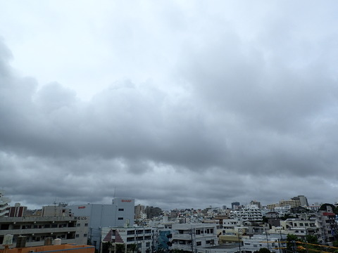 東(1枚目)と西(2枚目)で全く違う空が広がる梅雨戻りの沖縄。今日もどこかでザーッときそう