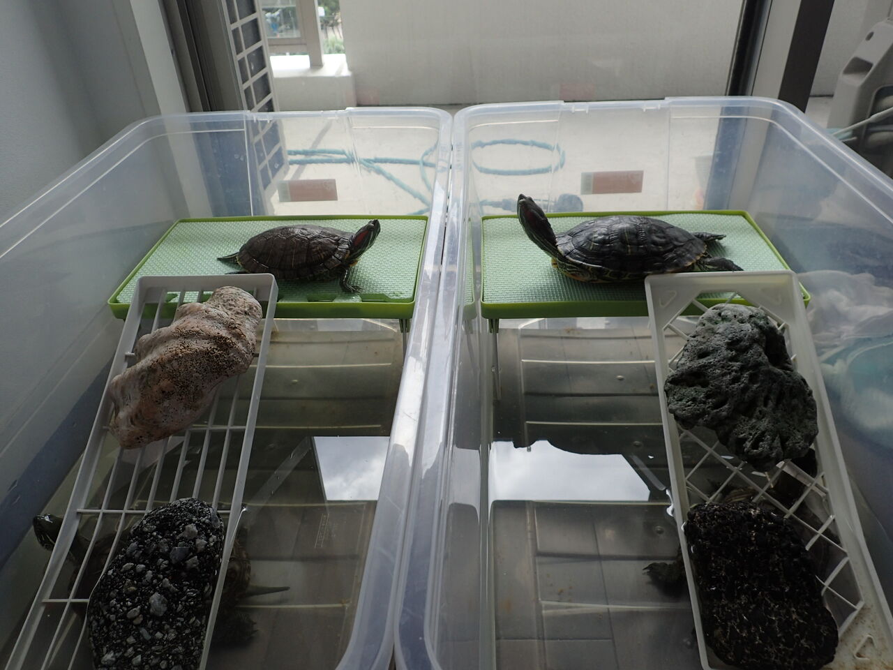 日差しがなくて外は寒いので、お部屋の中で甲羅干し![]()