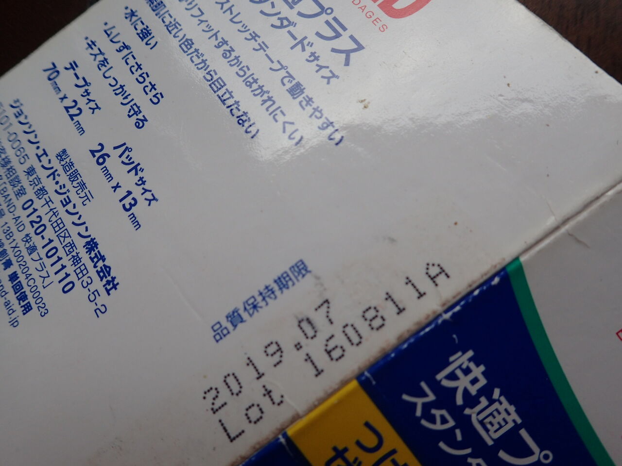 バンドエイドってそんなに頻繁に使わないので使用期限なんて気にしたことなかったけど粘着力落ちてます。これも沖縄あるある?湿気でダメになってる気が・・・