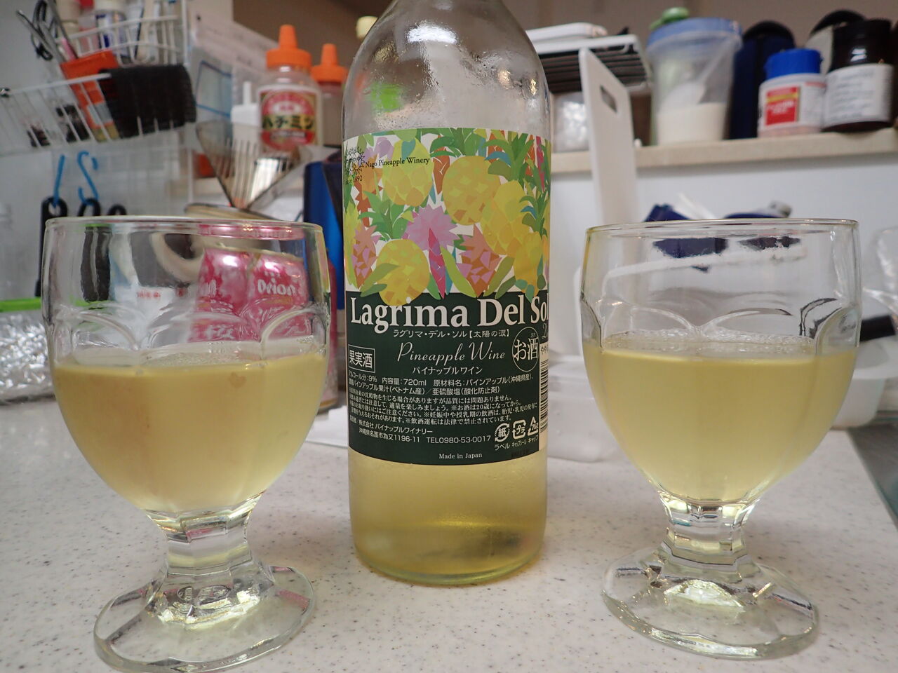 パイナップルだけを原料とした本格的なワインで、冷やせば冷やすほど風味がよくなるとの説明があったのですが、それを読んだ時は我が家のワインは残り少なくなっていました![]()