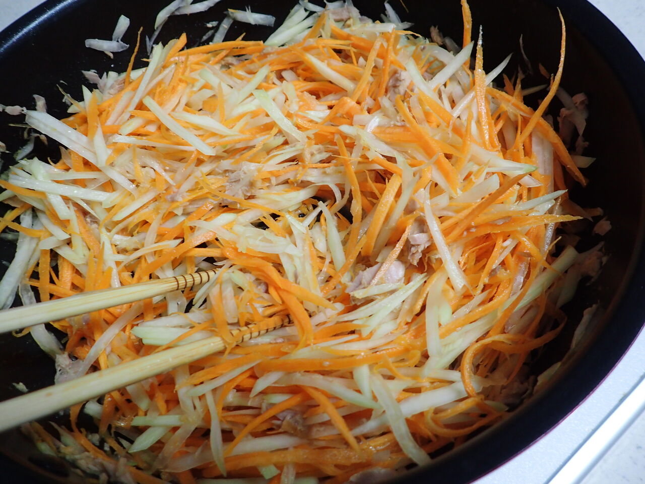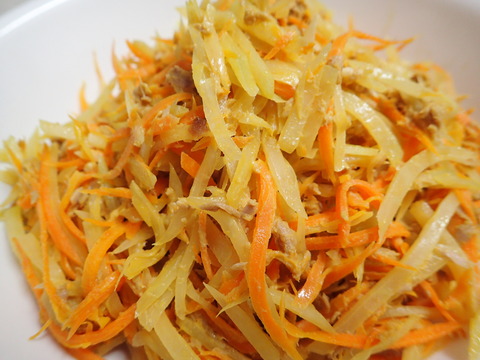 ツナと炒めて塩こしょう+お醤油+マヨネーズで味付け。ツナマヨに失敗はありません![]()