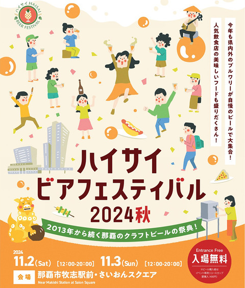 今週末、那覇でクラフトビールの祭典「ハイサイ ビアフェスティバル 2024秋」が開催されます。