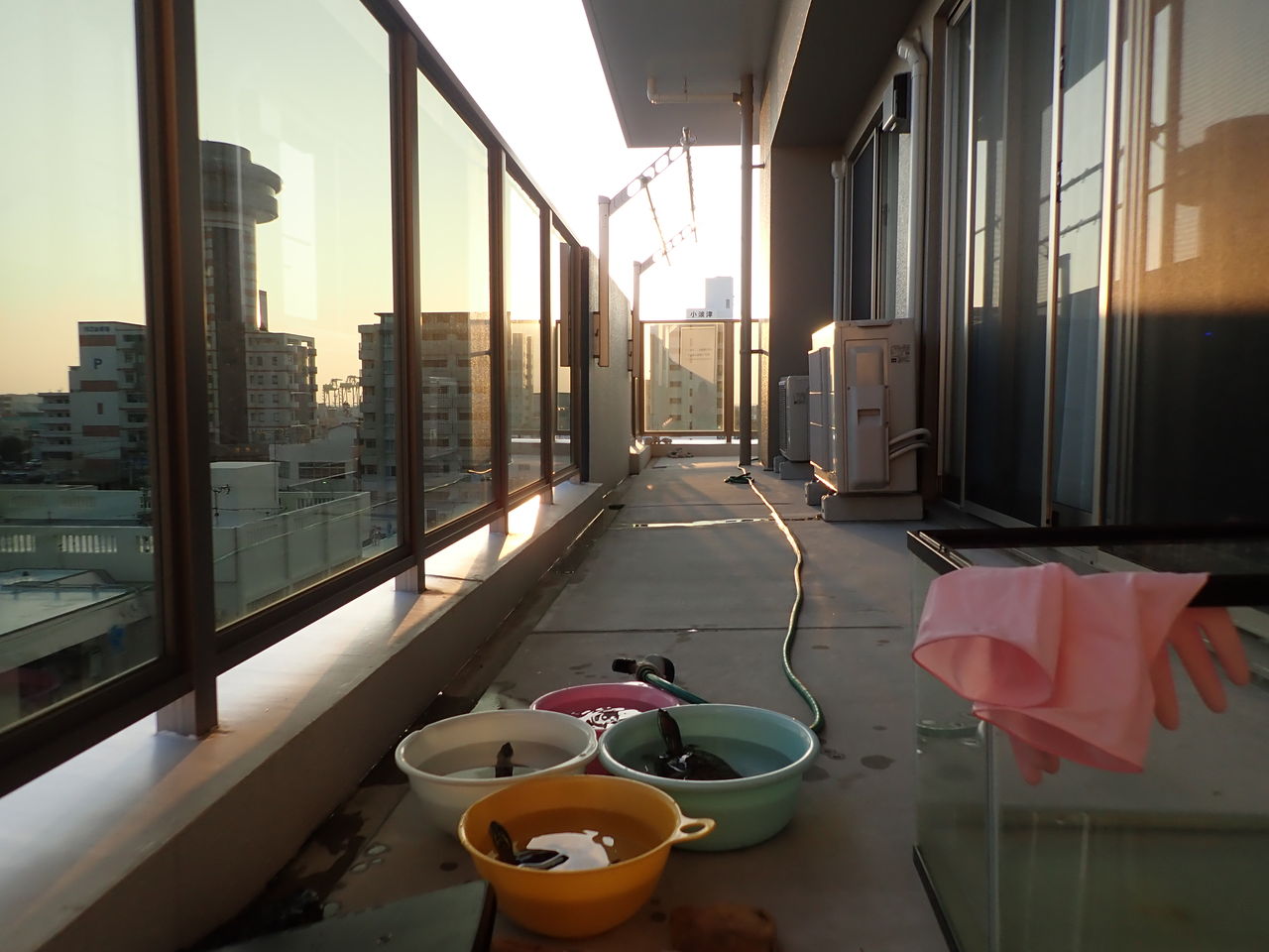 陽が射さない時期は昼間でも水替えができるのですが、この時期湿度は下がってきたものの、照り付ける太陽でベランダは1日中灼熱地獄