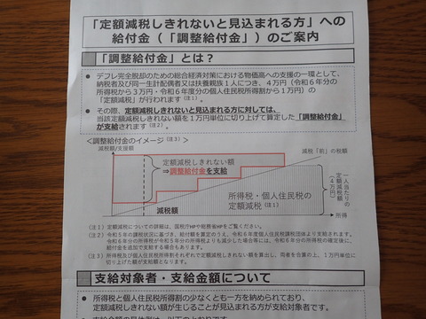 私は退職して2年目に入っているので、所得は年金のみ、ということで所得税の減税補足での調整給付の案内でした。