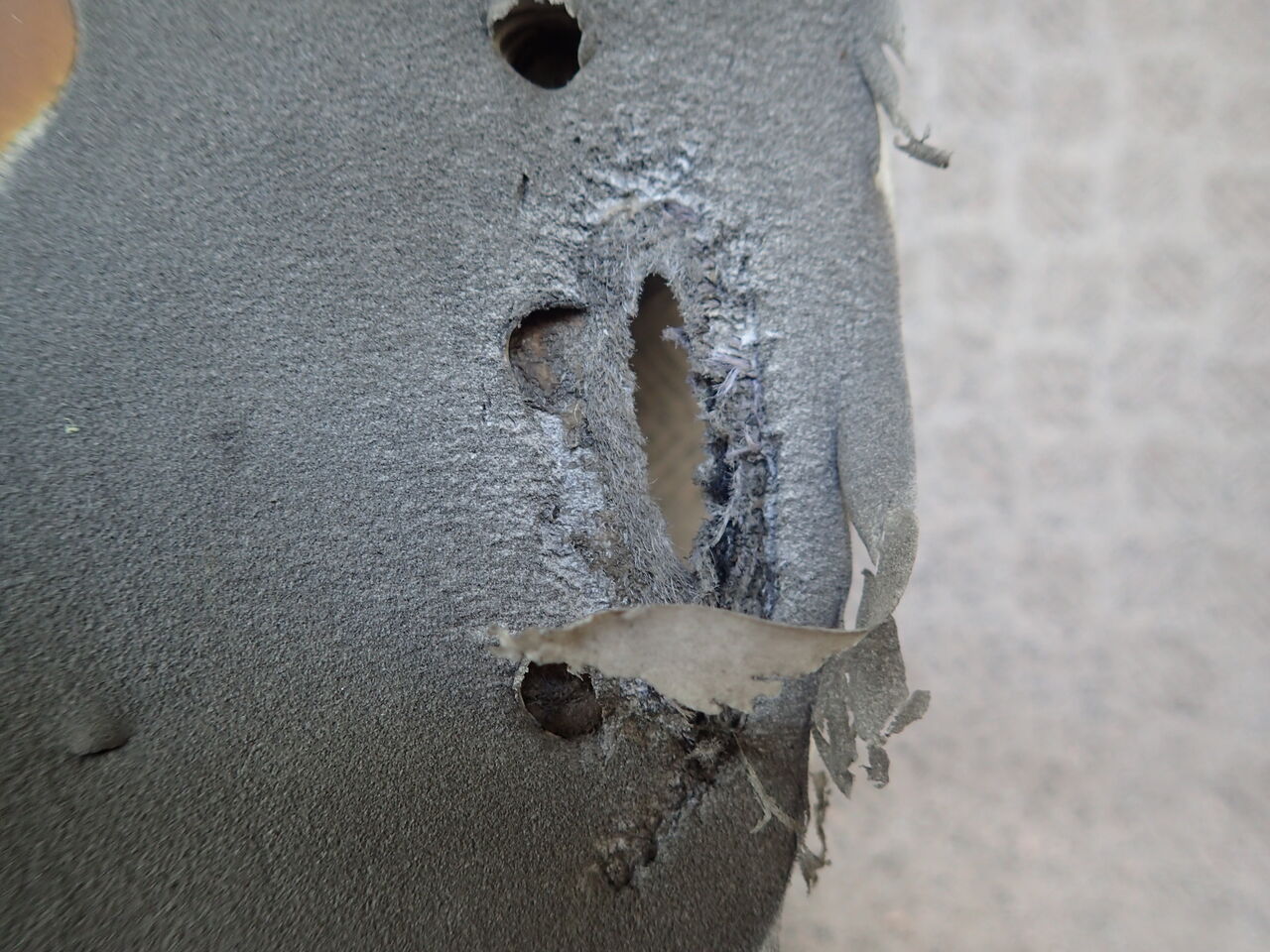靴底は見ると下が見えるほどの穴が![]()