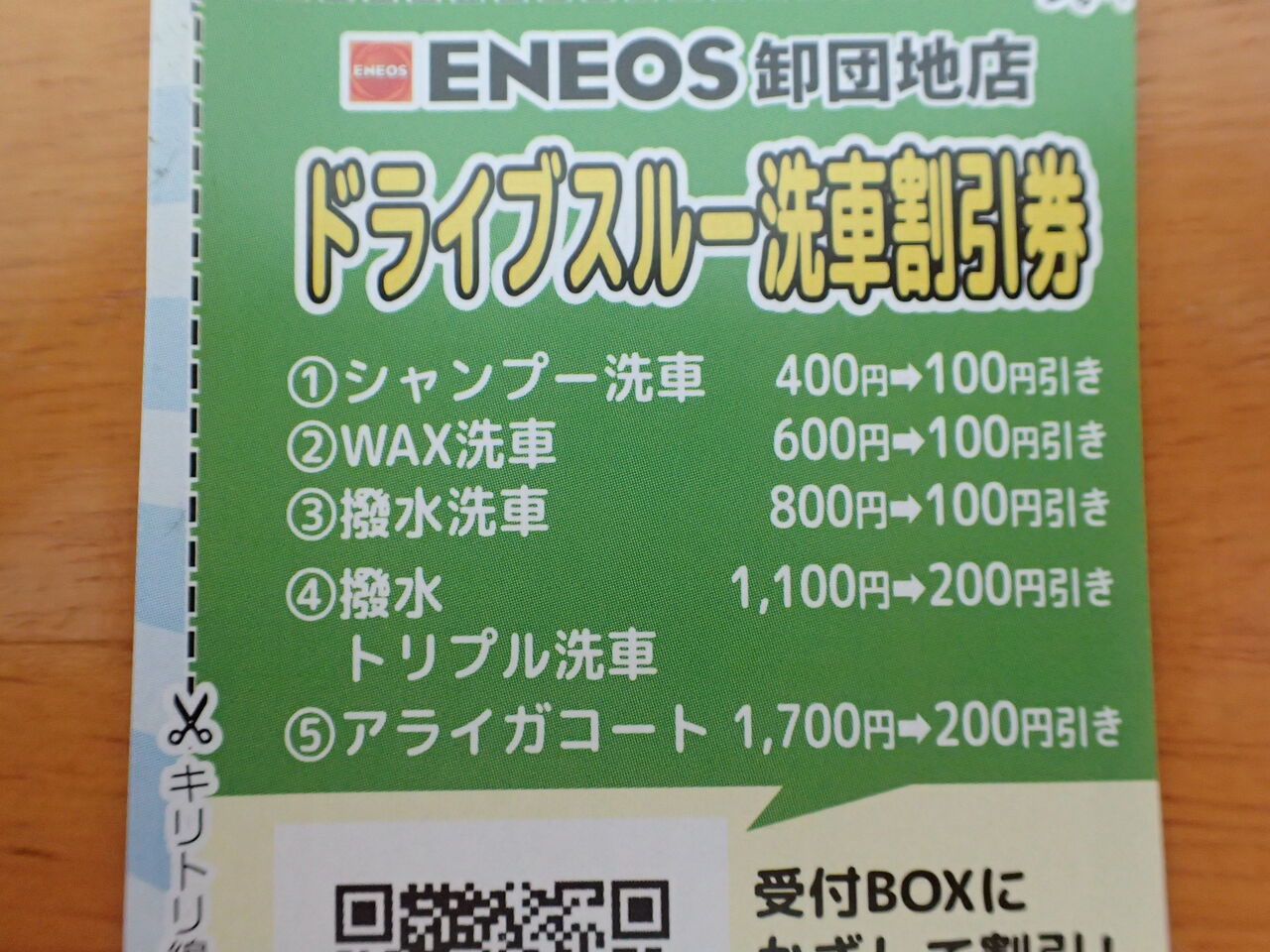 エネオスのワックス洗車は600円ですが、クーポン券を使えば100円引きの500円になります。