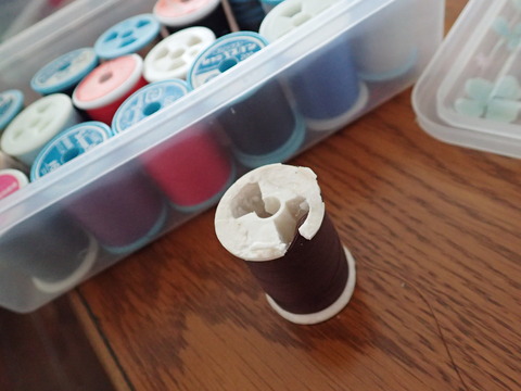 えっ!!ミシン糸の芯になっているプラスチック部分がぶよぶよふにゃふにゃ