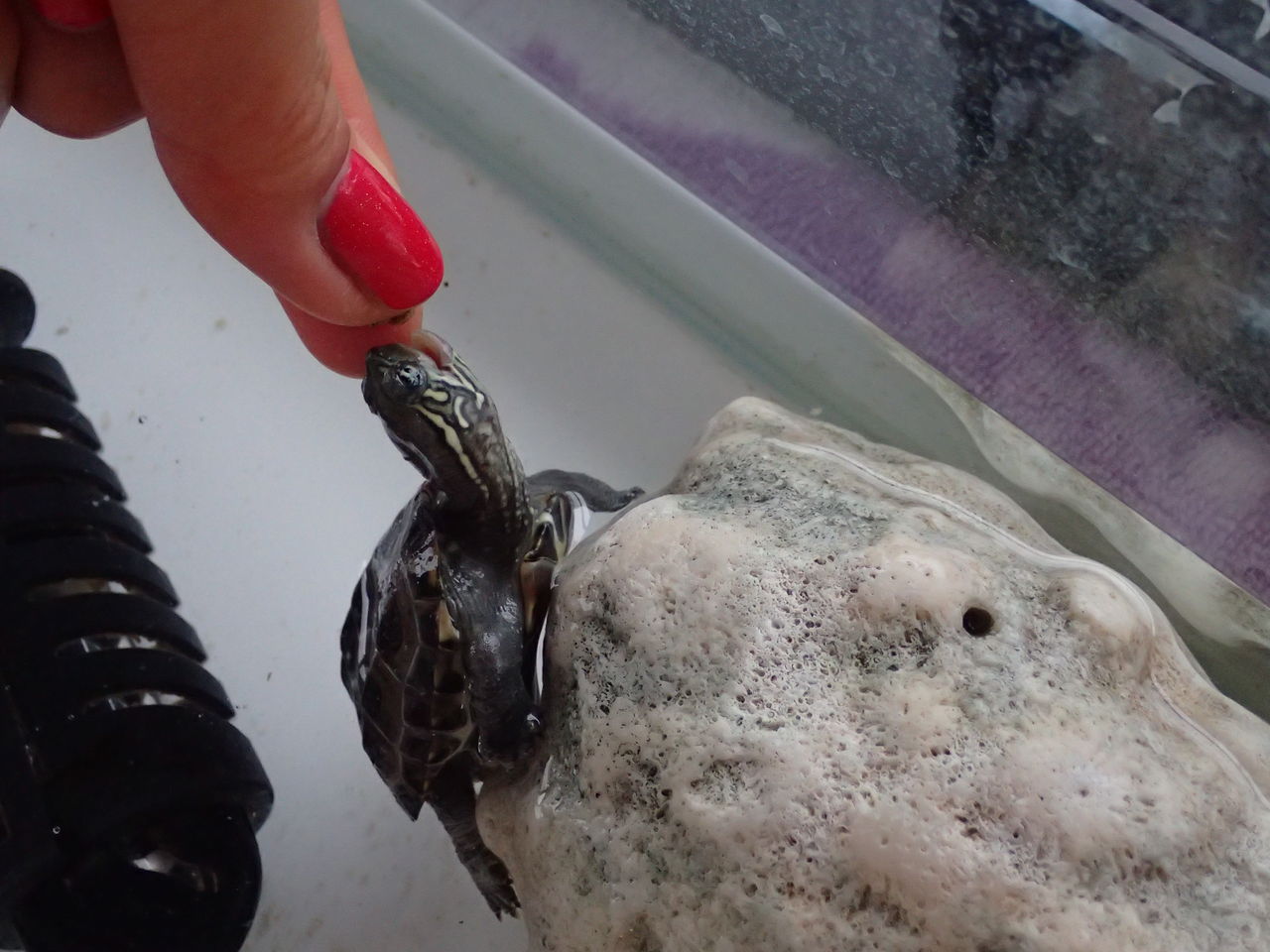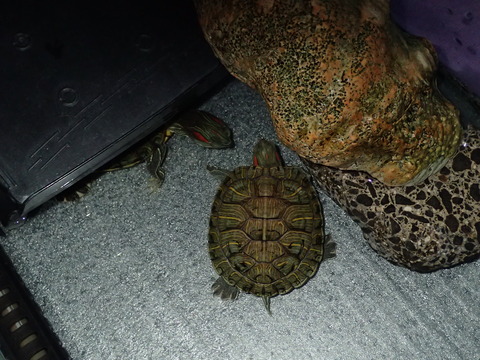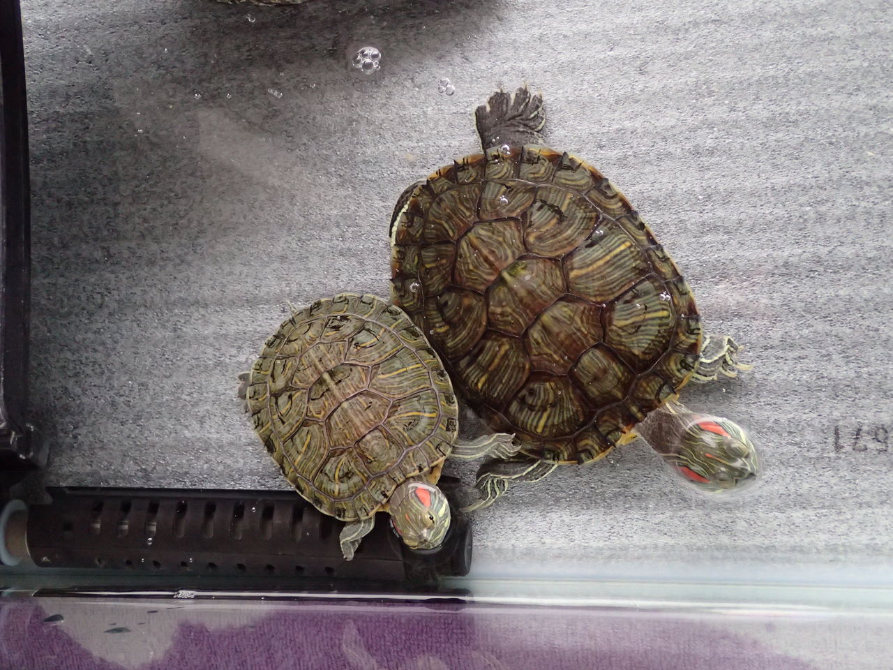 尻尾の大きさから、おっきい子は男の子、ちっちゃい子は女の子。おっきい子は最近甲羅を洗ってあげてる時も「ふんっ