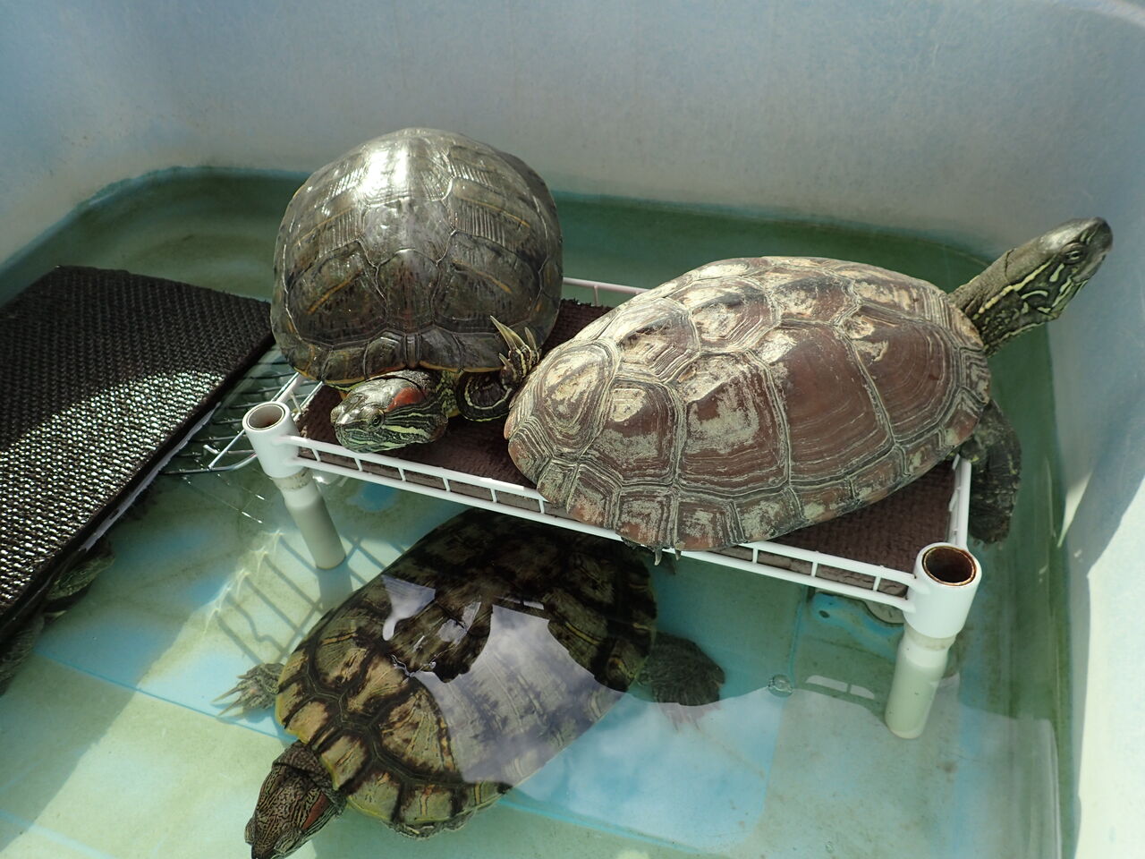 気温が15℃以下に下がると冬眠すると言われる亀ちゃん。沖縄は冬でも暖かいとは言え朝晩は13度くらいまで下がるので微妙なところ。日中日差しがあれば暖かいので冬眠もできず、でも眠くて仕方ないってところでしょうか