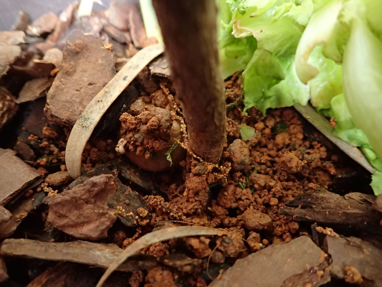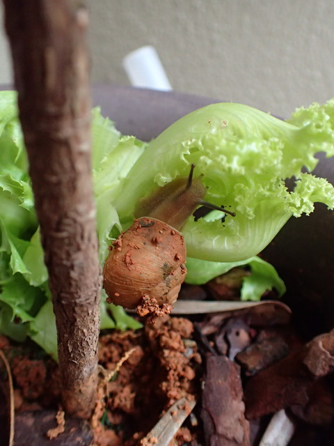 その後も鉢はそのまま置いています。何故ならその時一緒に連れてきたカタツムリのカタちゃんが住んでいるから![]()