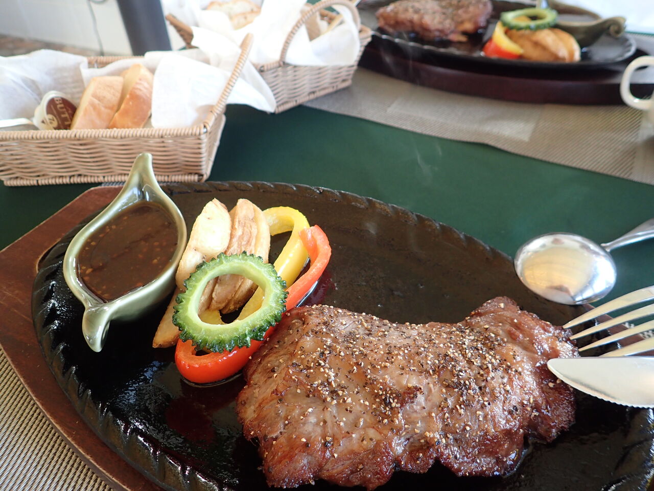 脂少なめ、プリプリした歯ごたえのラウンドカルビステーキをがっつり