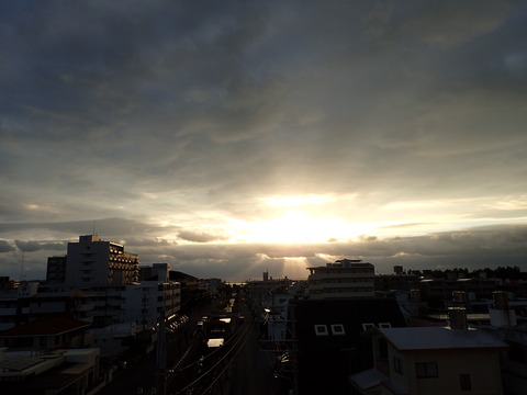 こんにちは、Nです。朝7時40分、雲から差し込む光のカーテン綺麗ですね