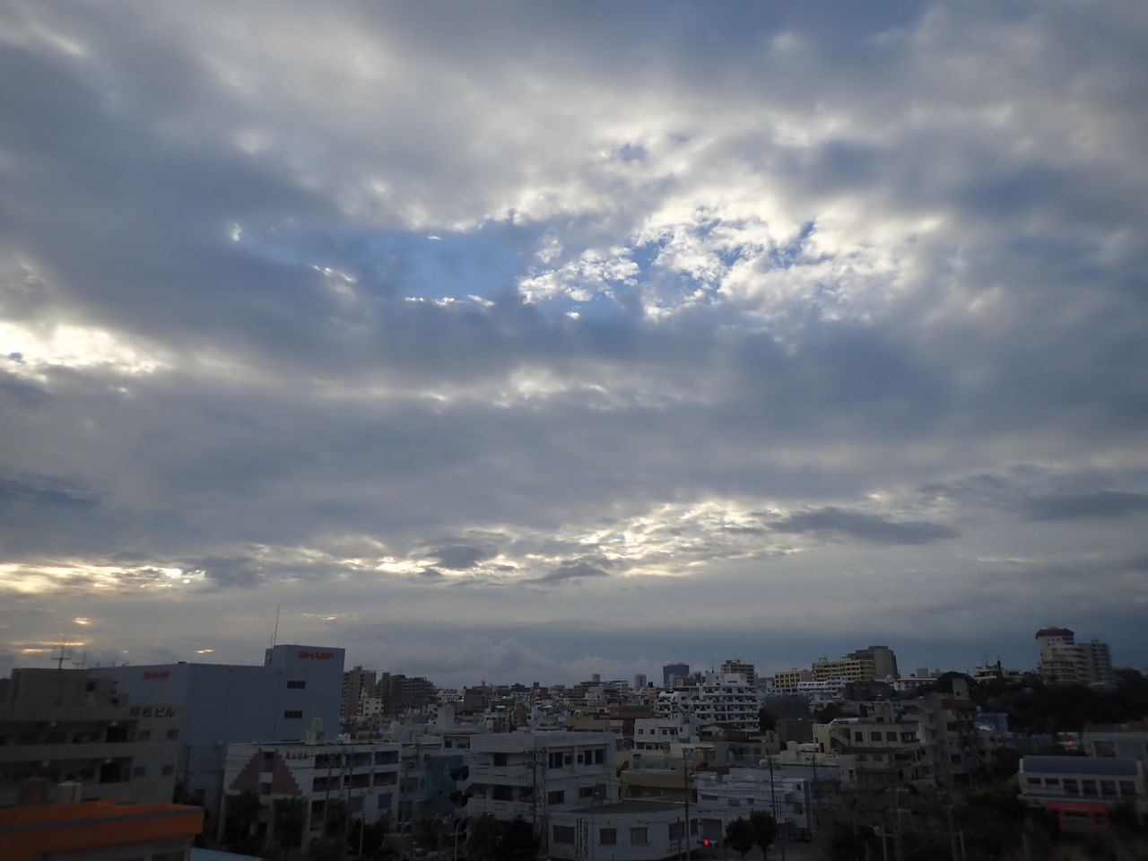 17℃~19℃☁予想の那覇市。すっきりはしないけど、雲の切れ間から光が射しています。