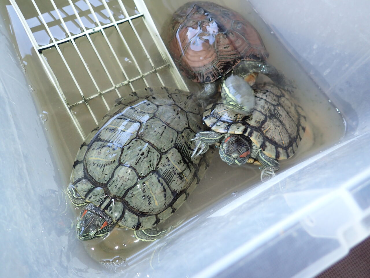 カメちゃんたちは久しぶりにお外へ