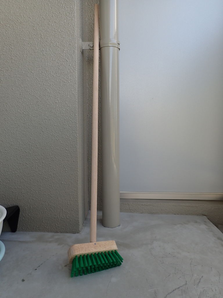 これまでの台風や暴風雨の後、Nはなんと靴を洗う小さなブラシでベランダの汚れを取っていたんです。