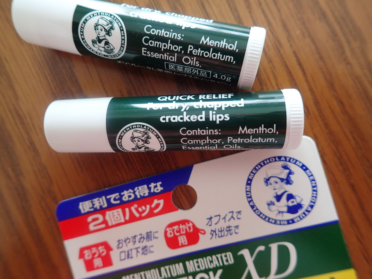 が好きなメンソレータムのリップ、2個パックで180円くらいだったかな?相変わらず破格のお値段です![]()