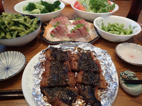 我が家の場合、夜はあくまでもお酒のお供なのでうな重ではなくかば焼きのまま![]()